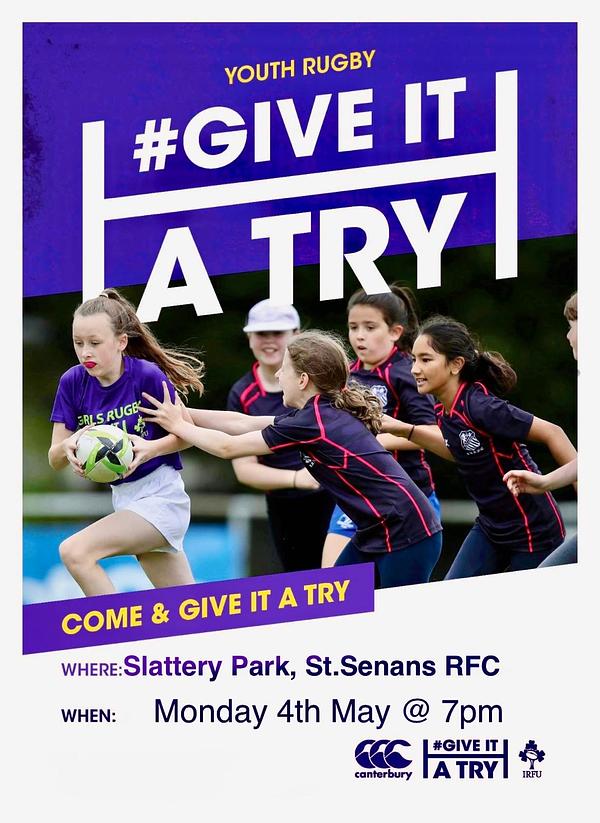 We are delighted to share the return of IRFU GIVE IT A TRY programme to Jimmy Slattery Park & St Senans RFC. ⚫️⚪️